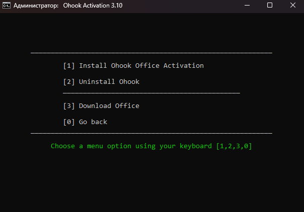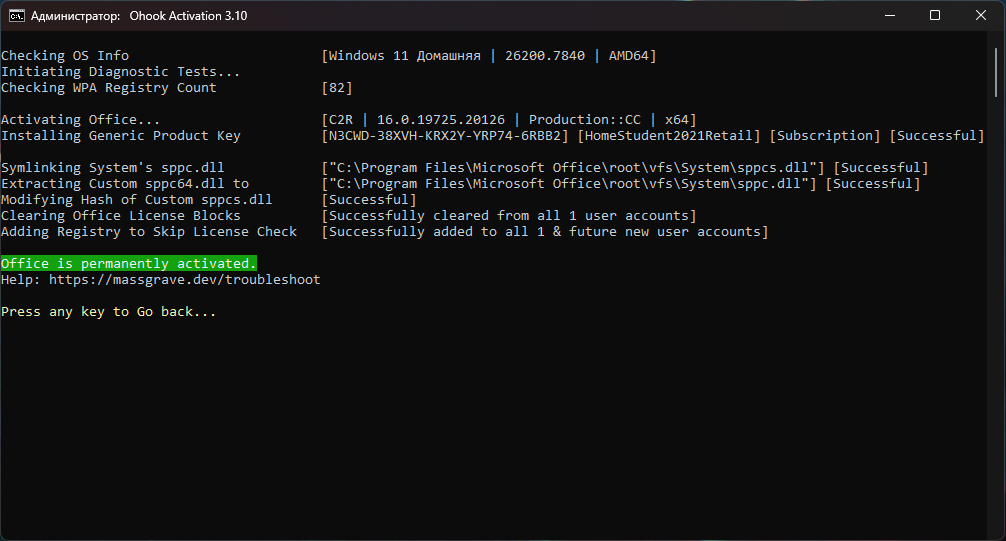 - После завершения установки не открывая Office запустите MAS_Online.cmd от имени администратора.