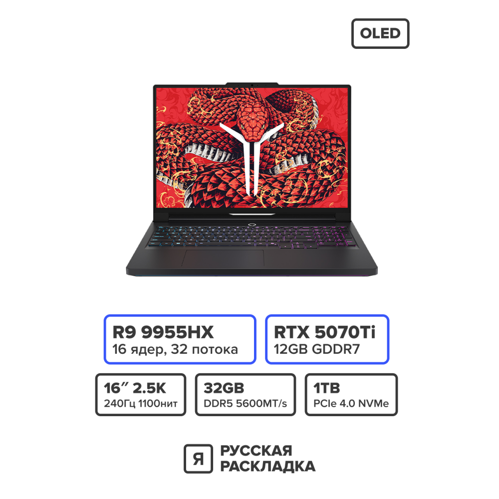 • Процессор: AMD Ryzen 9 9955HX с 16 ядрами и 32 потоками — один из самых мощных мобильных процессоров