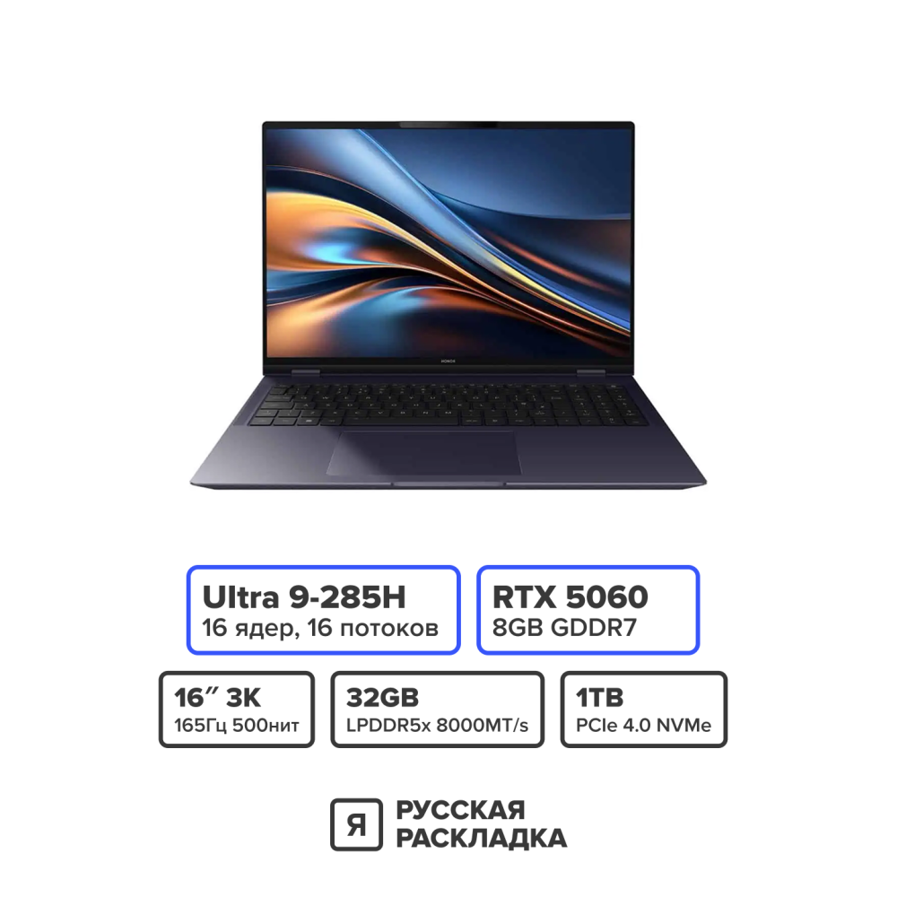 16" Игровой ноутбук Honor MagicBook Pro 16 в насыщенном синем исполнении — это сочетание флагманской производительности и стильного дизайна. Процессор Intel Core Ultra 9 285H и видеокарта NVIDIA RTX 5060 обеспечивают непревзойденный опыт для игр и профессиональных задач.