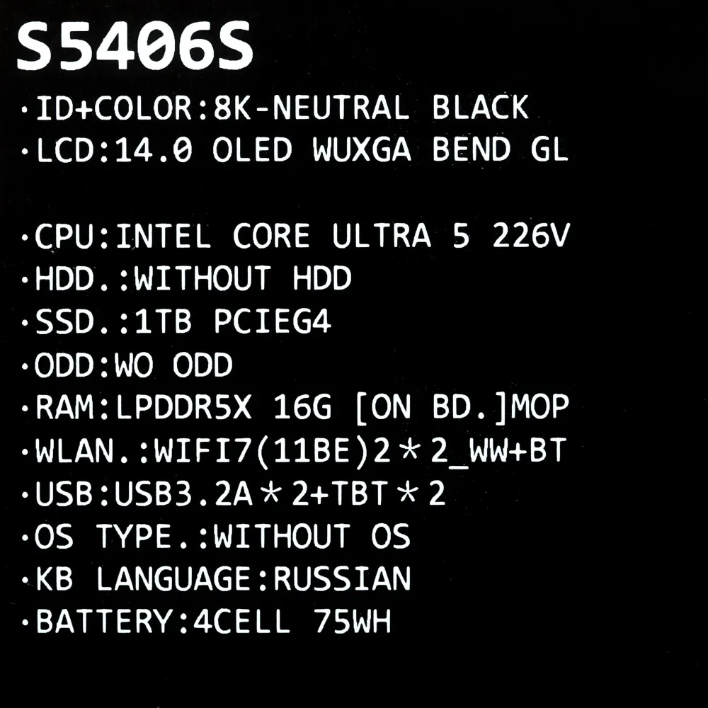 | Модель | ASUS Vivobook S 14 OLED S5406SA-QD194 |
