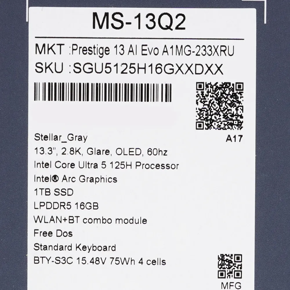 | Модель | MSI Prestige 13 Al Evo A1MG-233XRU |