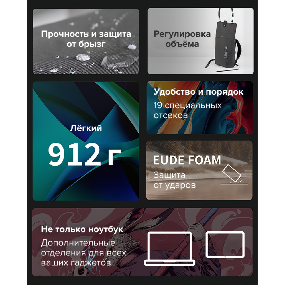 Рюкзак Lenovo Legion C3 выполнен с вниманием к деталям и эргономикой в основе дизайна.