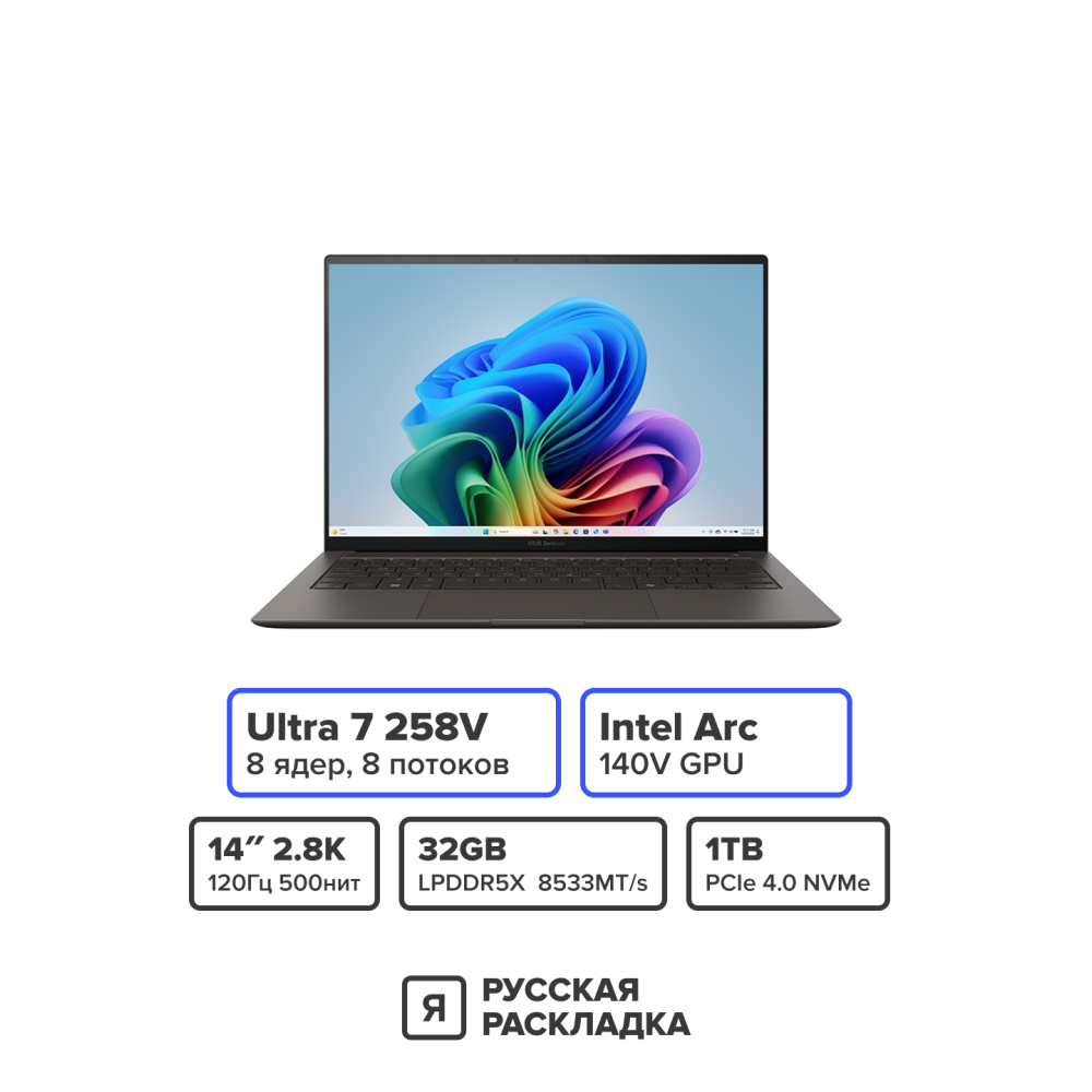 - Процессор: Intel Core Ultra 7 258V нового поколения Lunar Lake с интегрированной графикой Intel Arc Graphics обеспечивает оптимальную производительность при минимальном энергопотреблении