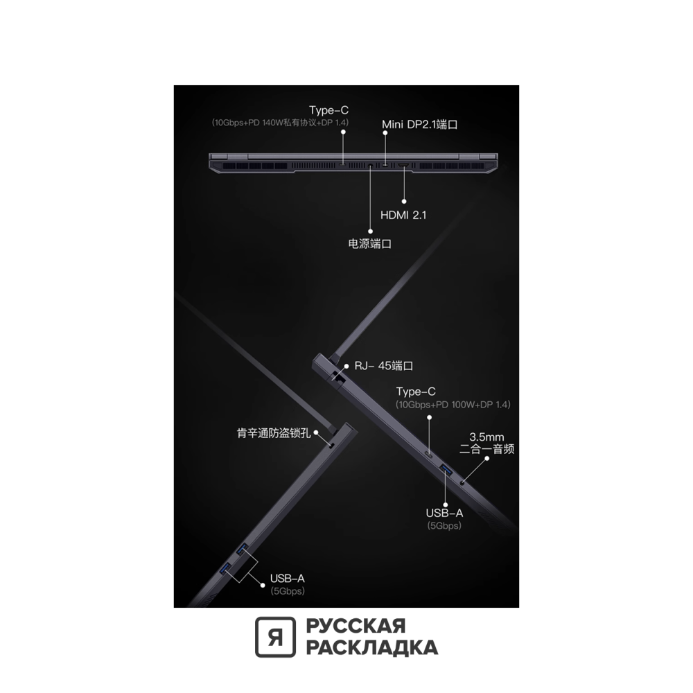 - Клавиатура: русская раскладка (лазером)