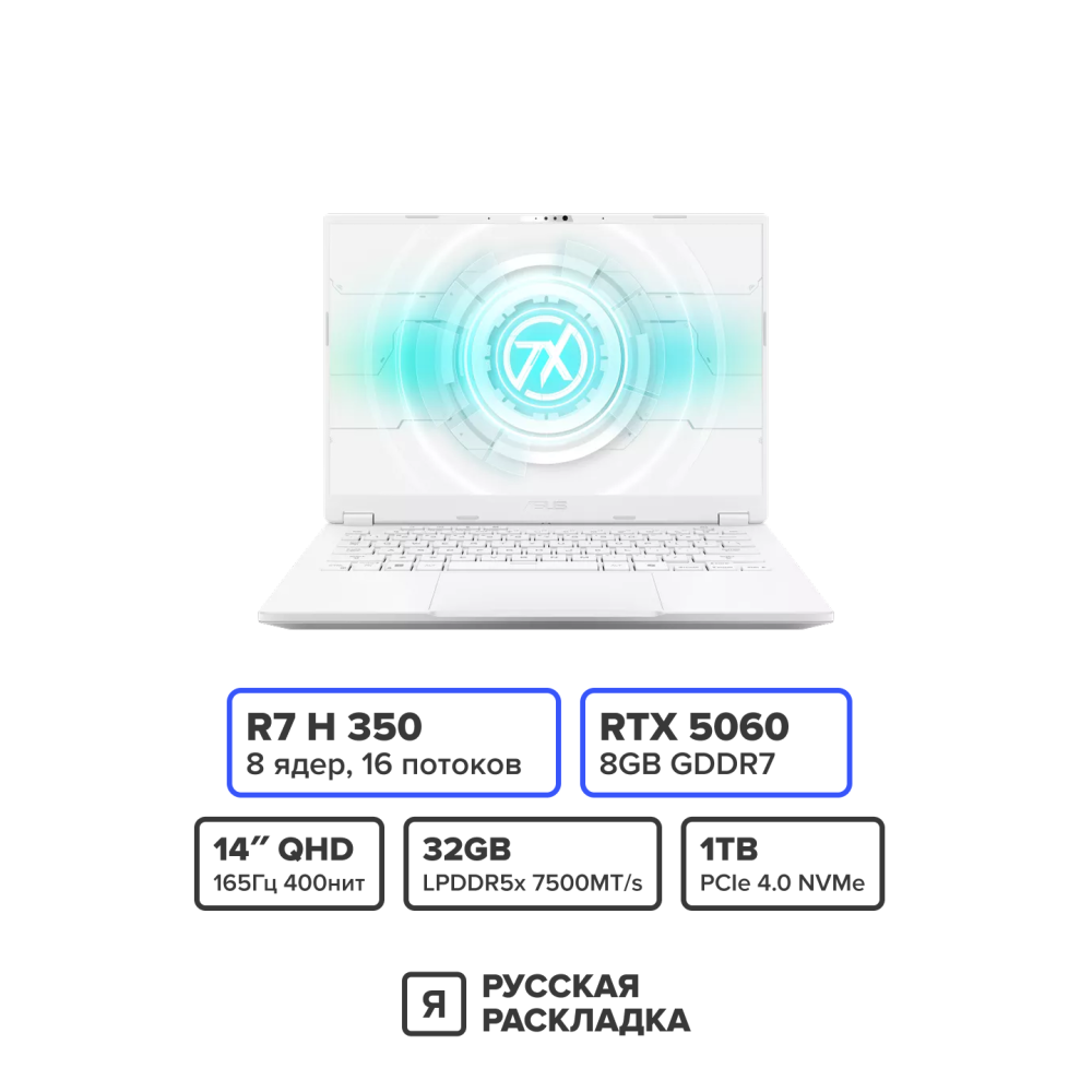 - Процессор: AMD Ryzen AI 7 H 350 с 8 ядрами и 16 потоками обеспечивает максимальную производительность в играх и ресурсоемких приложениях