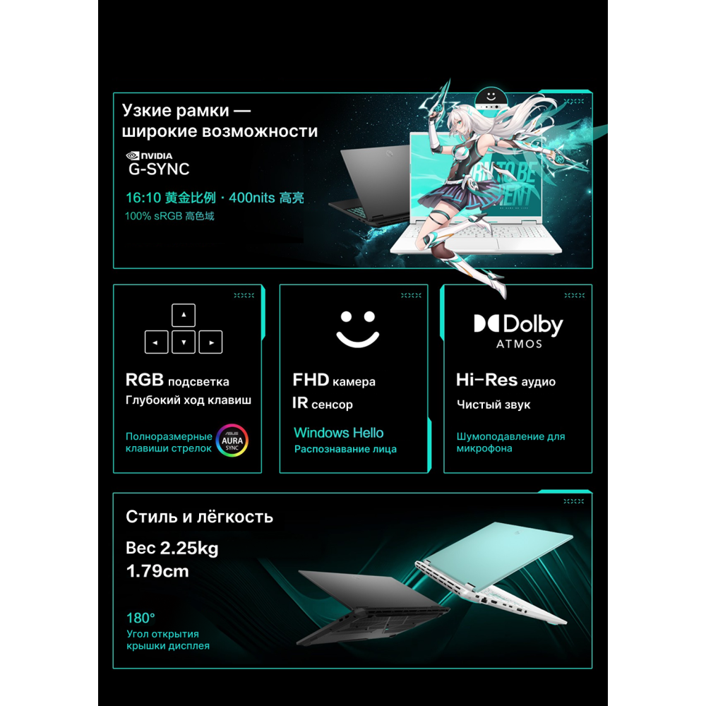 - Видеокарта: NVIDIA GeForce RTX 5060 с 8 ГБ памяти и TGP 115 Вт для комфортного гейминга в 2.5K