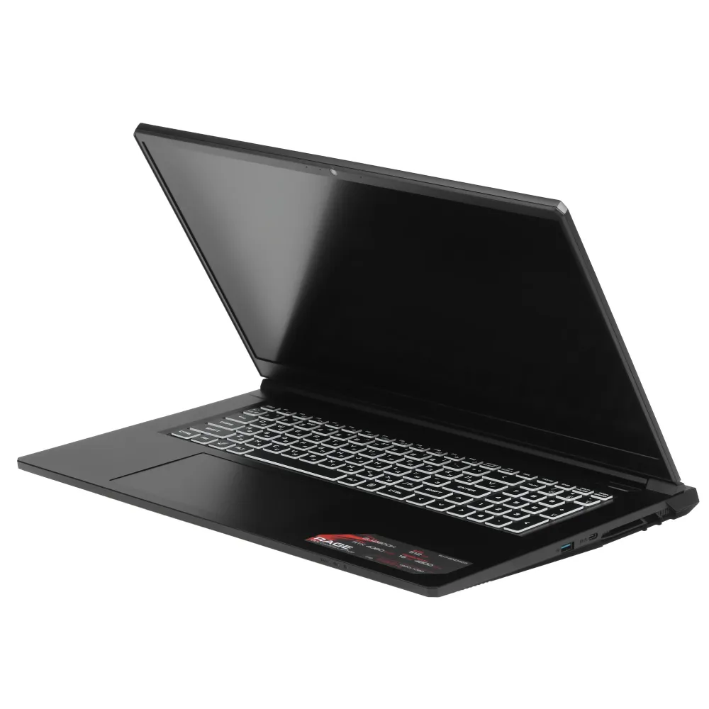 Ноутбук ARDOR Gaming RAGE R17-I5ND403 черного цвета получил монитор диагональю 17.3” с разрешением 1920x1080 и частотой обновления кадров 144 Гц, экран выводит четкое, детализированное изображение без эффекта смазывания при воспроизведении сцен с движущимися объектами. Модель получила полноразмерную русско/английскую клавиатуру с подсветкой RGB, в ней можно регулировать яркость каждого цвета и создавать плавные переходы между оттенками. Компьютер может подключаться к интернету через проводной канал LAN 1 Гбит/с или оптоволоконные линии, а также по WI-FI 6E на скорости до 9.6 Гбит/с.