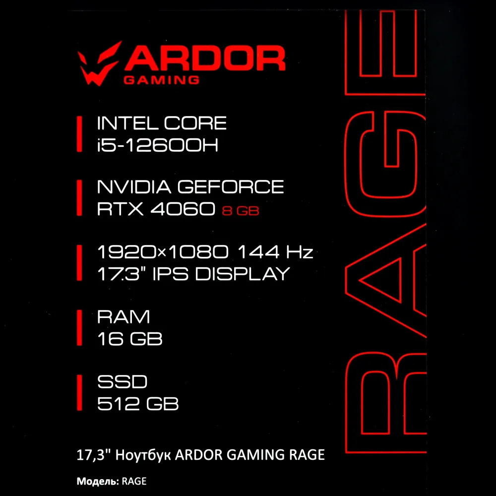 | Модель | ARDOR Gaming RAGE R17-I5ND403 |