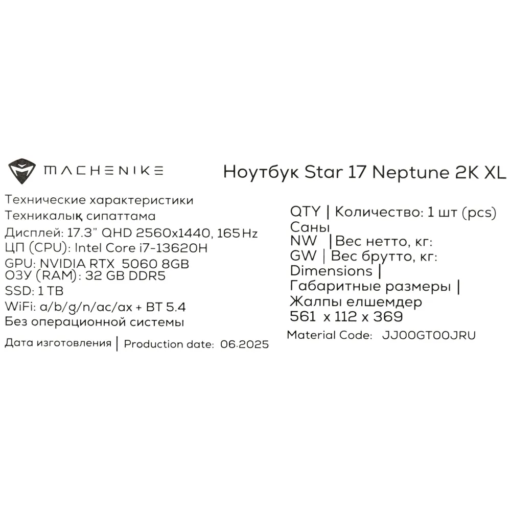 | ПроизводительMachenike | Тип ноутбуканоутбук | МодельMachenike Star 17 Neptune 2K XL |