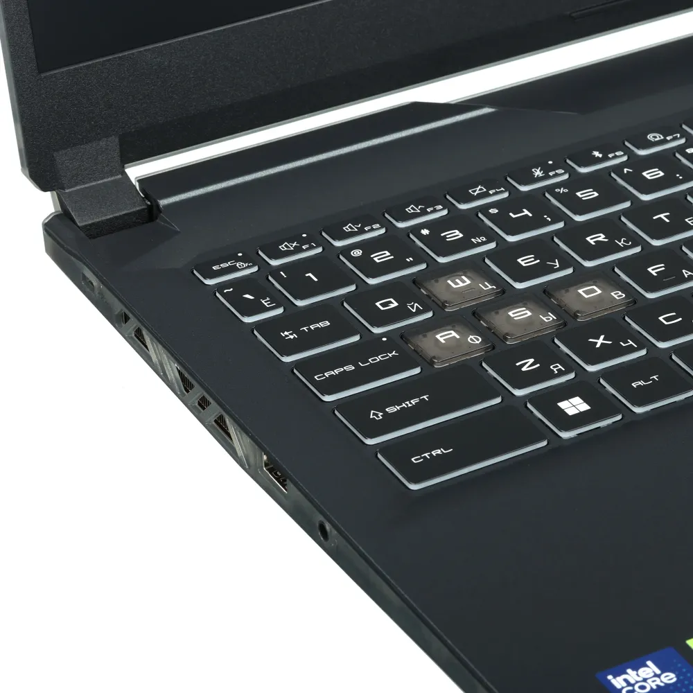 Ноутбук MSI Cyborg 15 AI A1VEK-219XRU с толщиной 22.9 мм и весом 1.98 кг облачен в приятный на ощупь корпус с алюминиевой крышкой. Наиболее востребованные игровые клавиши WASD визуально выделены на клавиатуре, чтобы пользователь смог быстрее найти их взглядом. В оснащение модели входит 16-ядерный процессор Intel Core Ultra 7 155H с интегрированным нейронным чипом для локальной обработки данных и энергоэффективного ускорения искусственного интеллекта. Дискретная видеокарта NVIDIA GeForce RTX 4050 с 6 ГБ видеопамяти обеспечит трансляцию детализированной игровой графики с поддержкой трассировки лучей.