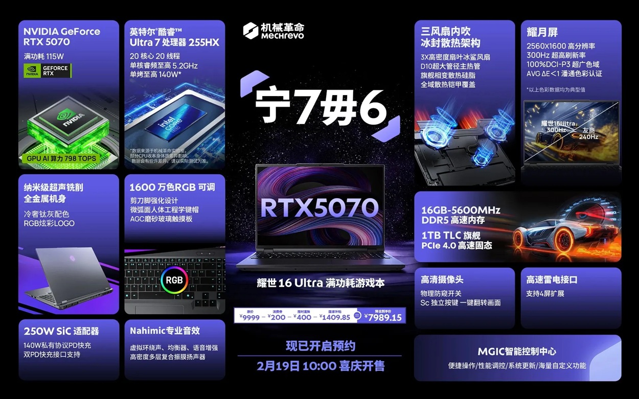 Стоимость игрового ноутбука Mechrevo Yaoshi 16 Ultra в Китае составляет 9999 юаней (около 111 500 рублей). Продажи начнутся 19 февраля.
