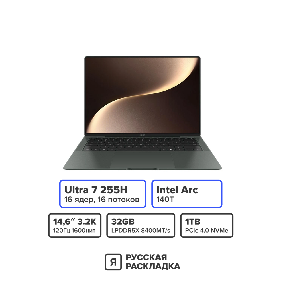 • 14.6" Ноутбук Honor MagicBook Art 14 Intel Ultra 7 255H OLED 3.1K 120 Гц Сенсорный RAM 32 ГБ SSD 1 ТБ Оливковый