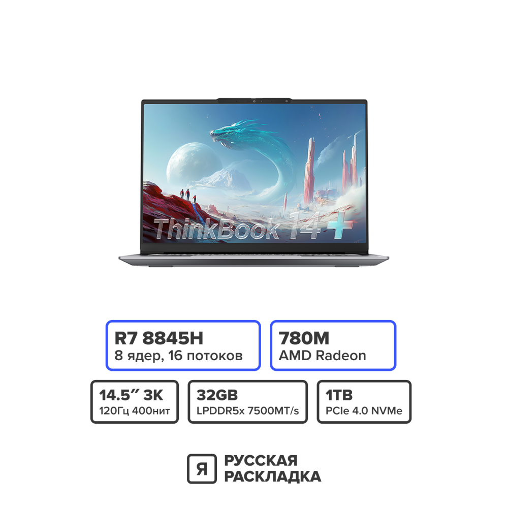 14.5" Ноутбук Lenovo ThinkBook 14+ — это совершенство для бизнеса, сочетающее мощь процессора AMD Ryzen 7 и эргономичный дизайн. Создан для профессионалов, ценящих надежность и производительность.