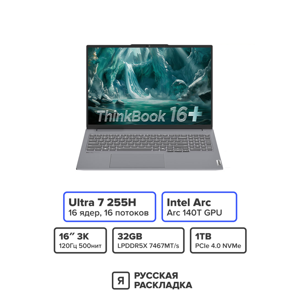 16" Ноутбук Lenovo ThinkBook 16+ — это флагманское бизнес-решение с процессором Intel Core Ultra 9 и дисплеем сверхвысокого разрешения 3.2K. Идеальный инструмент для профессионалов, работающих с графикой и большими данными.