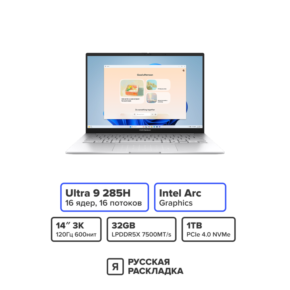 | ПроизводительASUS | ЛинейкаZenbook | Диагональ дисплея14" |